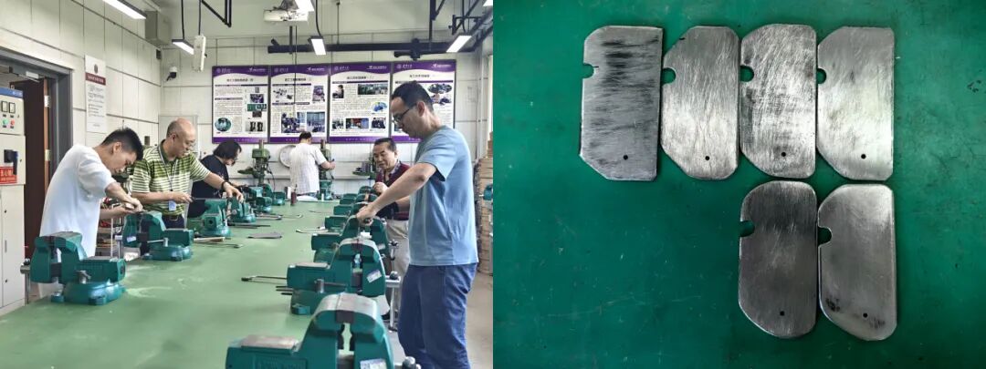 钳工实训模块以培训传统机械加工和装配技能为目标。杨忠昌老师讲授了钳工工作的基本内容和应用领域,包括零件的划线、锯切、锉削、钻孔、攻丝等,以及钳工工具和设备的名称、用途及正确使用方法,例如台虎钳、手锯、锉刀、钻床等。最后,参与培训的老师在规范操作下制作出了开瓶器。
