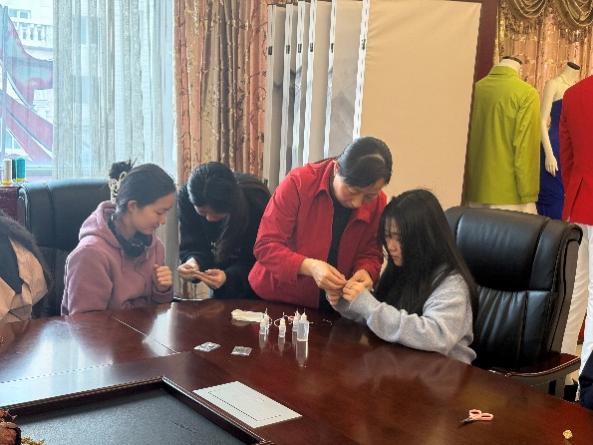 参观结束后,李燕春师傅手把手带领大家动手实践,体验宋锦戒指与布艺小熊的手工制作流程。同学们亲身感受传统面料的独特纹路与细腻质感,在穿针引线间收获手工创作的乐趣,于指尖触碰非遗,在实践中体悟匠心。